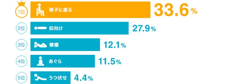 横寝・あぐらも上位にランクインしていることから、やはりリラックスして画面を見やすい姿勢が好まれる傾向にあります。
